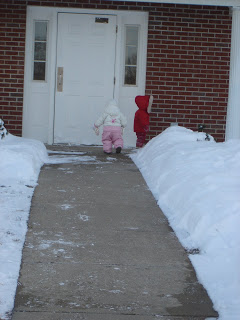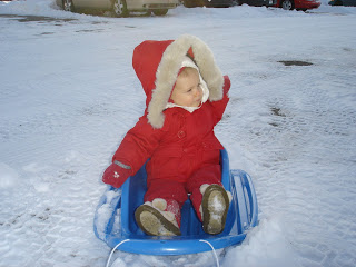 We finally got enough snow last week to be able to take Riley “sledding” for the first time. She had actually never played in the snow until now. Over night we got about 15 inches of snow and thought then would be the perfect opportunity. A good friend of mine, Sarah, came over with her daughter, Mia, and we decided to take the girls out and see how they liked being in the snow. I think Riley had a good time, but I don’t think she liked being bundled up so much that she couldn’t move. Maybe I was being a tad overprotective-she had layers upon layers so she probably wasn’t the most comfortable but I didn’t want her to get cold. Here are a few pictures from our adventure.