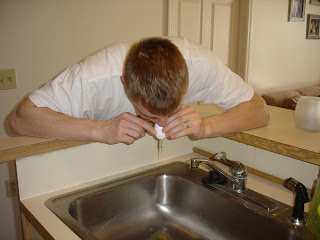 Ty emptying the eggs into the sink.