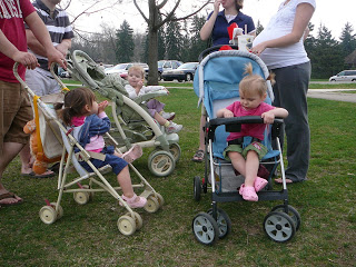 The girls in their strollers eating a snack (Riley kept feeding both of them, she’s learning how to share :)!)