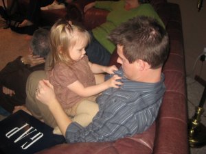 I realize that I’m a little bit late on this post…but better late than never right? We had a wonderful Thanksgiving, spent with lots of family. We went to my dad’s side of the family–to my Aunt and Uncle’s house. Dinner and desert was delicious, as always and time spent with family is never long enough. Riley loves Nani and Papa and calls them constantly–I think that’s why I went over on my phone minutes last month (seriously). She also got to see my cousins who she’s always been fond of (especially Britton–not to be confused with my sister-in-law, yes they have the exact same name now). When she was a baby he was the only one who was able to hold her without her screaming. This time she branched out and spent most of her time with Whitney, reading books and eating raisins :).