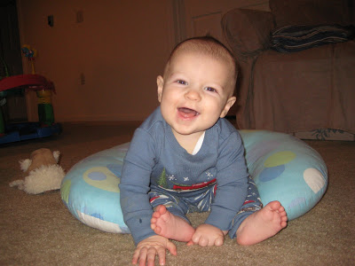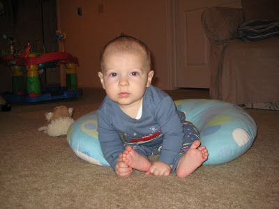 Another milestone we’ve reached is Lincoln sitting all by himself (well with the boppy, just in case he takes a spill.) I didn’t know when he officially started sitting by himself, but lately he’s sitting for long periods of time. He’s also still army crawling ALL the time and can get everywhere…he’s even starting to get on his hands and knees and rock back and forth.