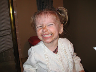 This is what I get for letting my brother give Riley ONE piece of chocolate and not watching her every move. She had it all over her clothes and especially all over her white sweater! (THANKS KOLBY)