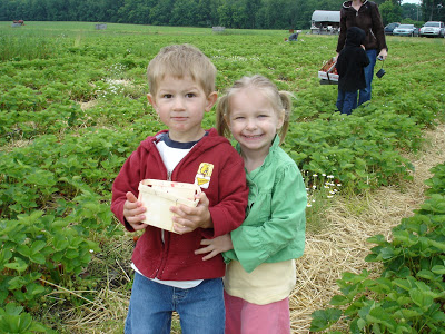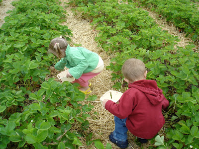 This past week we decided to go Strawberry picking with our playgroup at Mandigo Farms in Paw Paw with the little ones. Well, Ty had the morning off so he stayed home with Lincoln (and Lydia, Mandy’s 1 year old) so we could carpool and just take the big kids and not worry about the babies. I was so looking forward to this time with Riley. I hardly get to spend very much one on one time with her that I cherish so much. We had such a good time and I think she ate more strawberries than we brought home. She was a mess afterwards, but it was totally worth it. Now we’ve got a fridge full of strawberries that we’re enjoying!