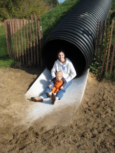 Lincoln and I went down the slide together–definitely not good when you have a healing tailbone! (Yes, it still hurts…bad!)