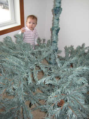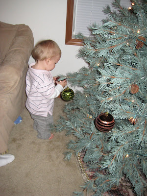 Once the ornaments were on the tree Lincoln was all of a sudden interested in the tree…but not in a good way. We wouldn’t leave the thing alone. He kept taking all the ornaments off the tree and hoarding them. Every time we told him not to touch he got VERY upset. Needless to say he cried for about 2 hours straight and now our tree is only half decorated (the top, of course). Whatever works. I wasn’t about to deal with him crying and undecorating the tree for 3 weeks!