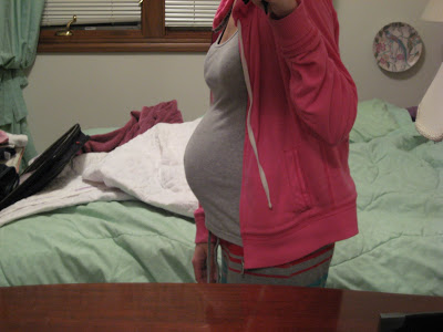 oh my gosh!! you're definitely bigger than me. I have my maternity clothes box down from the attic… most of my jeans are too tight, only the few pair i can wear i can't button the top button. i'll have to take a picture this weekend (once we have all our goodies unpacked). I'm so excited to be pregnant with you again! ๐ congratulations!