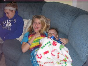 Poor Riley was exhausted after opening gifts and eating a ton that she fell asleep on Kasey while watching Veggie Tales! Thank goodness I didn’t have to deal with putting her to bed that night.