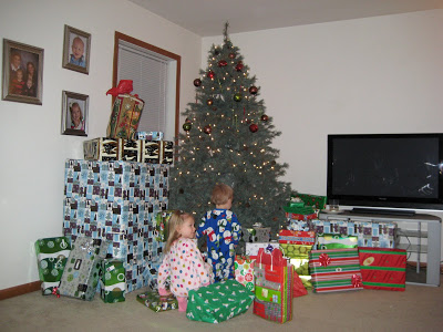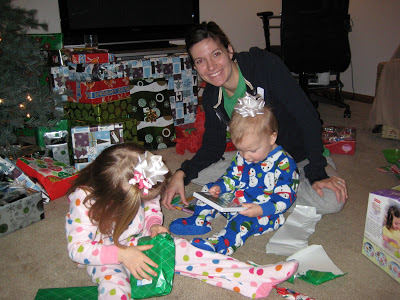 I have been Christmas shopping for what seems like the entire year and I suppose I must have forgotten about a few gifts because when I was wrapping them I couldn’t believe how many the kids had! On Christmas Eve Riley and Lincoln left cookies and milk for Santa and carrots for the reindeer. It was Riley’s idea so we went with it, but we’re not sure if, in the future, we’re going to do the whole “Santa thing”…we’ll see. The kids were up at 5:30, BOTH of them, so we came down bright and early. Riley walked down first and looked like a deer in headlights when she saw the tree. She couldn’t believe there were gifts for her under the tree. Then she started running around saying “Santa, Santa…where are you?”. Before we open gifts we read the Bible story of Jesus’ birth because we want the kids to know that Christmas is not about the gifts, but about the birth of our Savior!