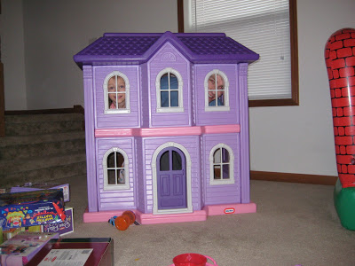 Riley’s huge doll house (I underestimated how big this really was–her and Lincoln crawl through the front door of it, if that gives you any sense of it’s size). Look closely and you can see two faces in the windows.