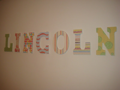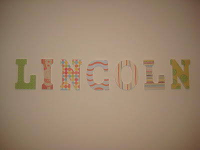 I had a theme and paint colors all picked out for the kids’ rooms but Ty thinks it’s not worth it to paint since we (hopefully) won’t be here too long…so I decided since Lincoln’s walls are pretty bare and white that I’d make his name in letters. It gave me something to do and it was way cheaper than buying them from online.