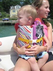 Lincoln’s first boat ride, being held tight by Aunt Britton.