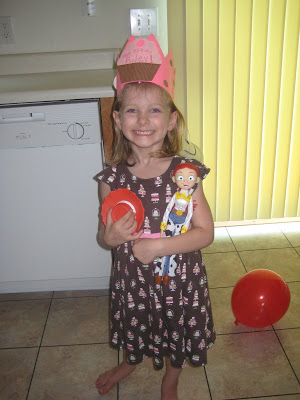 Riley had a really fun birthday and it just happened to fall on a day that she was going to preschool. She picked out her birthday cake dress (and panties) and we made pink cupcakes with sprinkles to take as a treat. She was so excited to tell her teacher that it was her birthday. When I picked her up she had a special hat on that she got to wear for the day since it was her birthday!