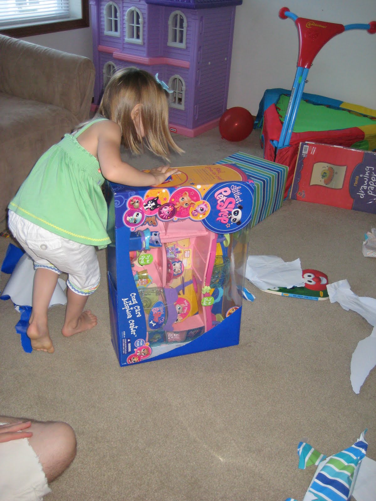 Riley opening all of her gifts. She gots lots of goodies: Jessie from TS3, Littlest Pet Shop stuff, crafts, a bean bag, too much to list…she and Lincoln have been occupied for a long time with these new toys. Next year we may do a “friends” birthday party for her, but since she didn’t care and didn’t really notice it was nice to do something low-key with just the 5 of us!