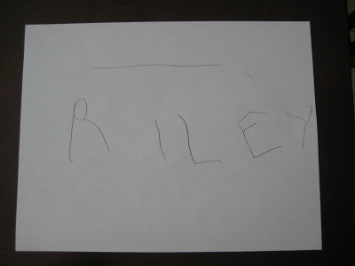 I have been working with Riley on writing her name. A couple days after she turned four, I asked her to write her name (I spelled it for her since she gets the letters mixed up sometimes). This is her very first time writing her name all by herself: