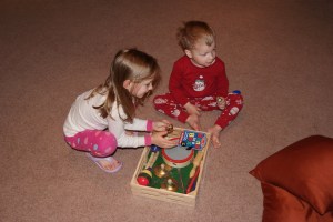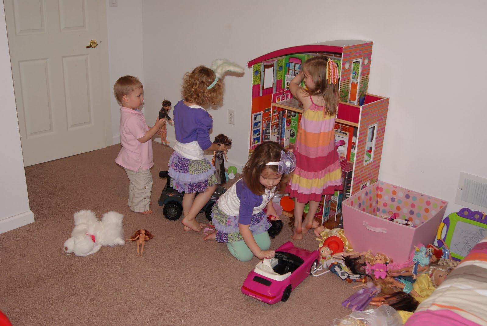 The kids playing so well in Riley’s room: