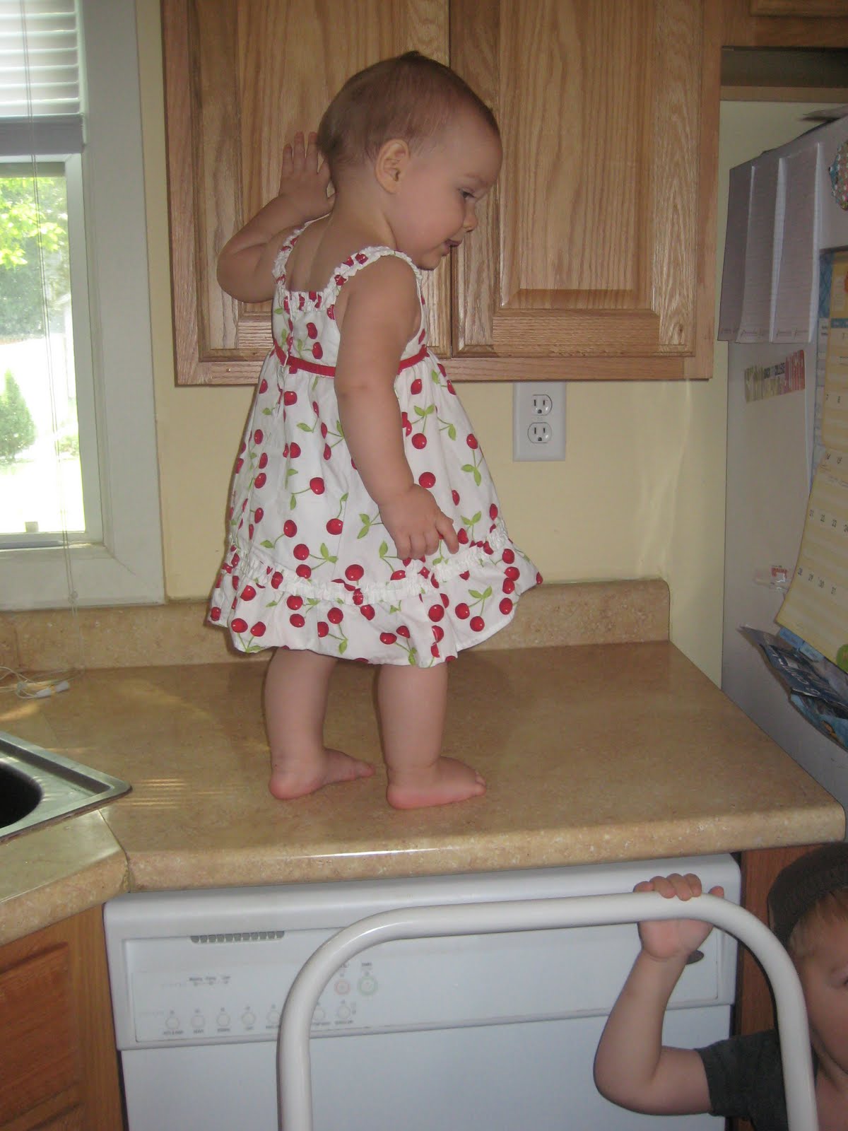 Then later that same day I had the step stool out to get something out of a high cupboard, I turned around to make lunch and the next thing I knew Lincoln said “Mom, get Emery!!!”. I turned around and found her here: