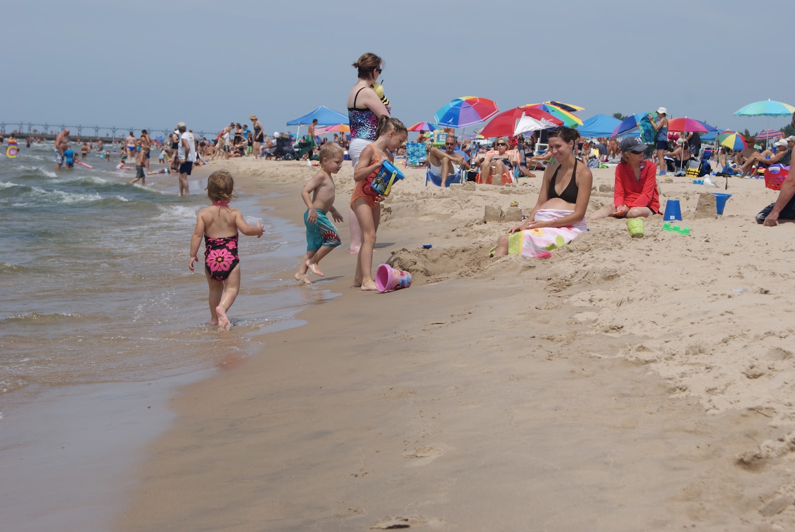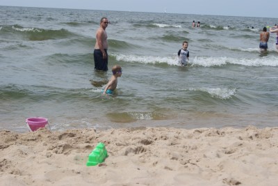 I never knew it, until we moved away, but I really took having a beach within a VERY short driving distance for granted. I have always lived on a lake or just minutes from great beaches. It is something Ty and I both missed living in WV and IL. We are glad to be in Grand Rapids where we are within 30 minutes of Lake Michigan and plan to take advantage of it. I was glad Ty was with us (this time) because it’s not easy for this preggo to take all 3 to the beach. I have taken them all and it’s just a LOT of work but definitely worth it! Lincoln hardly got out of the water. He LOVED riding the waves and splashing in the water. Riley was about 50/50 in and out of the water and E mostly played in the sand! We had so much fun and spent most of the day in Grand Haven and got ice cream afterwards.
