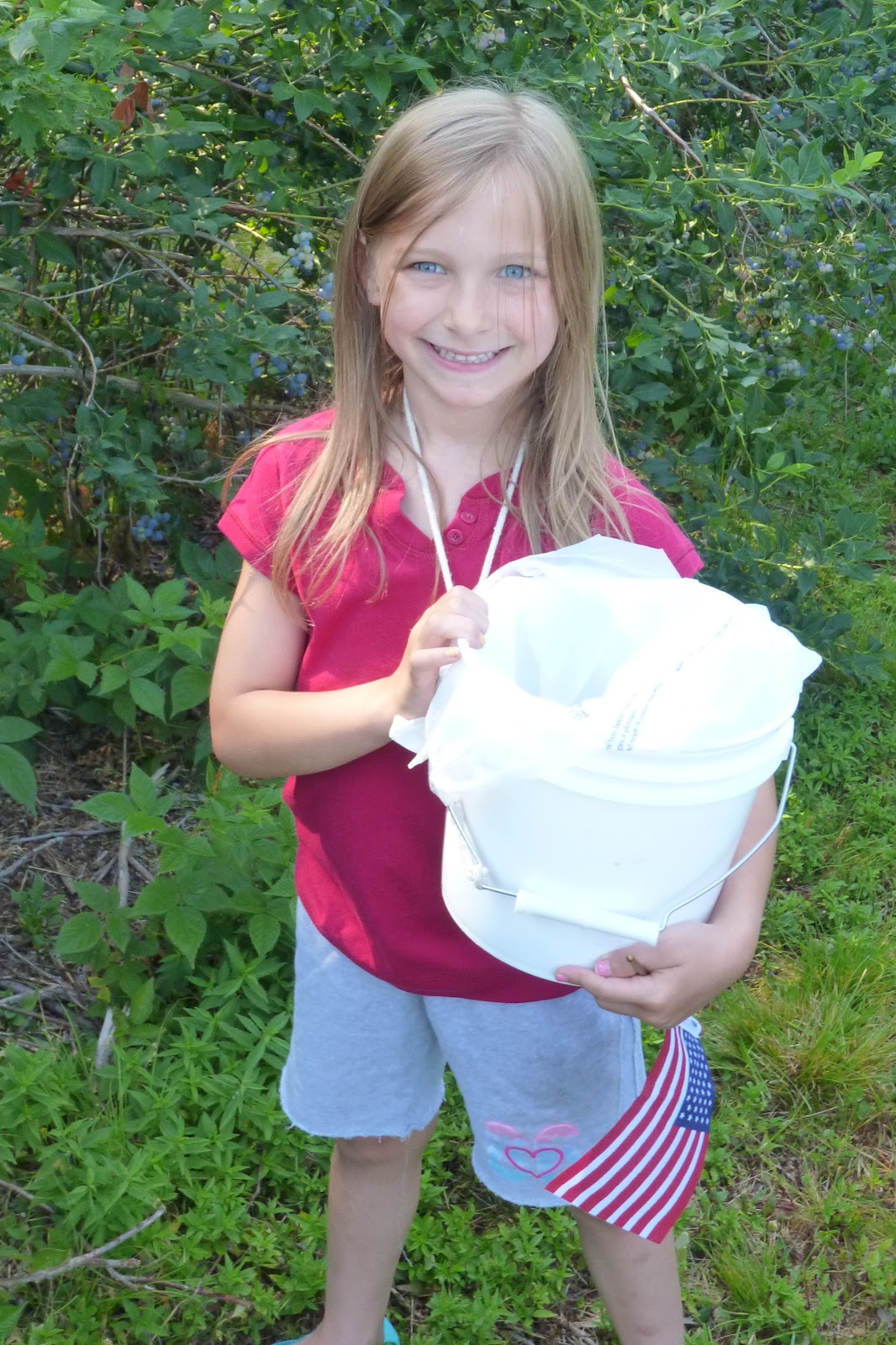 Emmersyn happy eating the blueberries off the bushes!