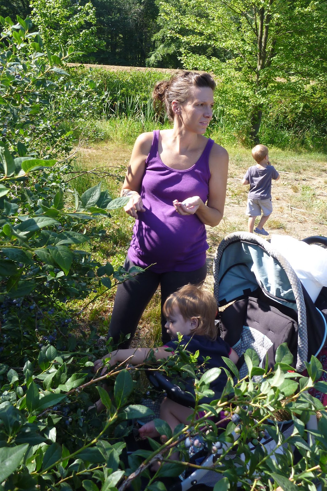 There’s nothing like fresh, homegrown fruit! Recently I took the kids to pick blueberries and they had a blast. I’m pretty sure they (especially Emmersyn) ate their weight in blueberries. I kept handing the blueberries to her, but I couldn’t keep up with her consumption so I ended up just pushing her up to the bushes and she picked and ate them herself :)! She’s such a good baby, we were there 2 hours and she sat, contently, in her stroller the entire time!