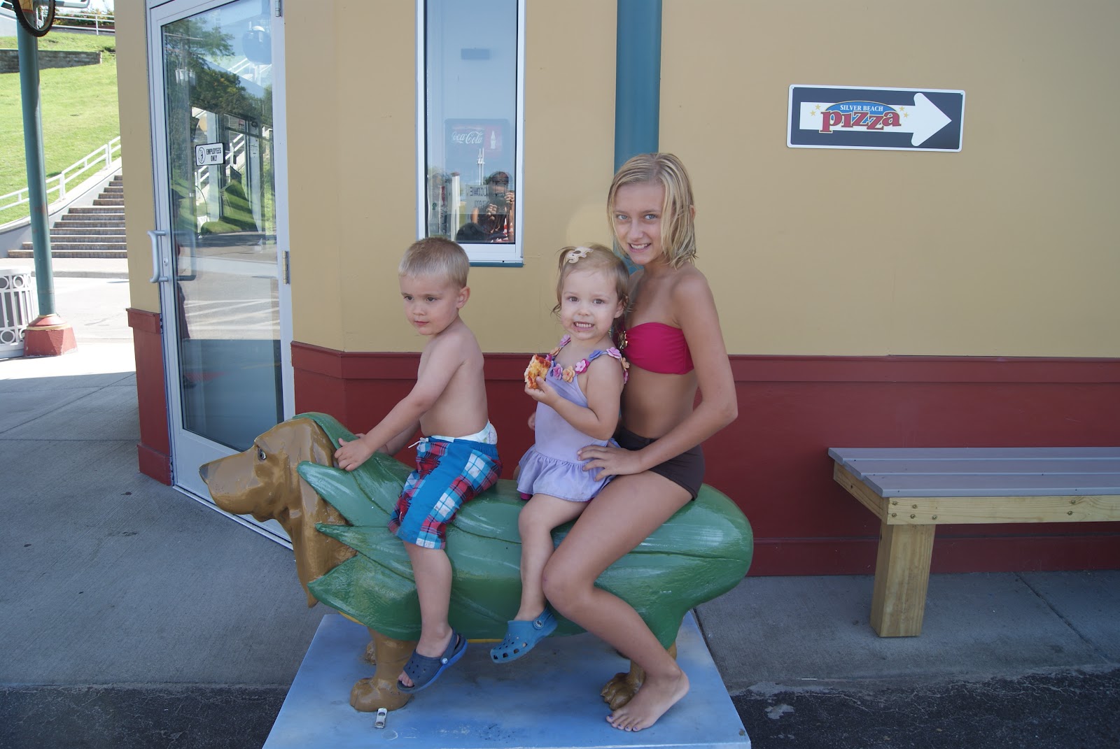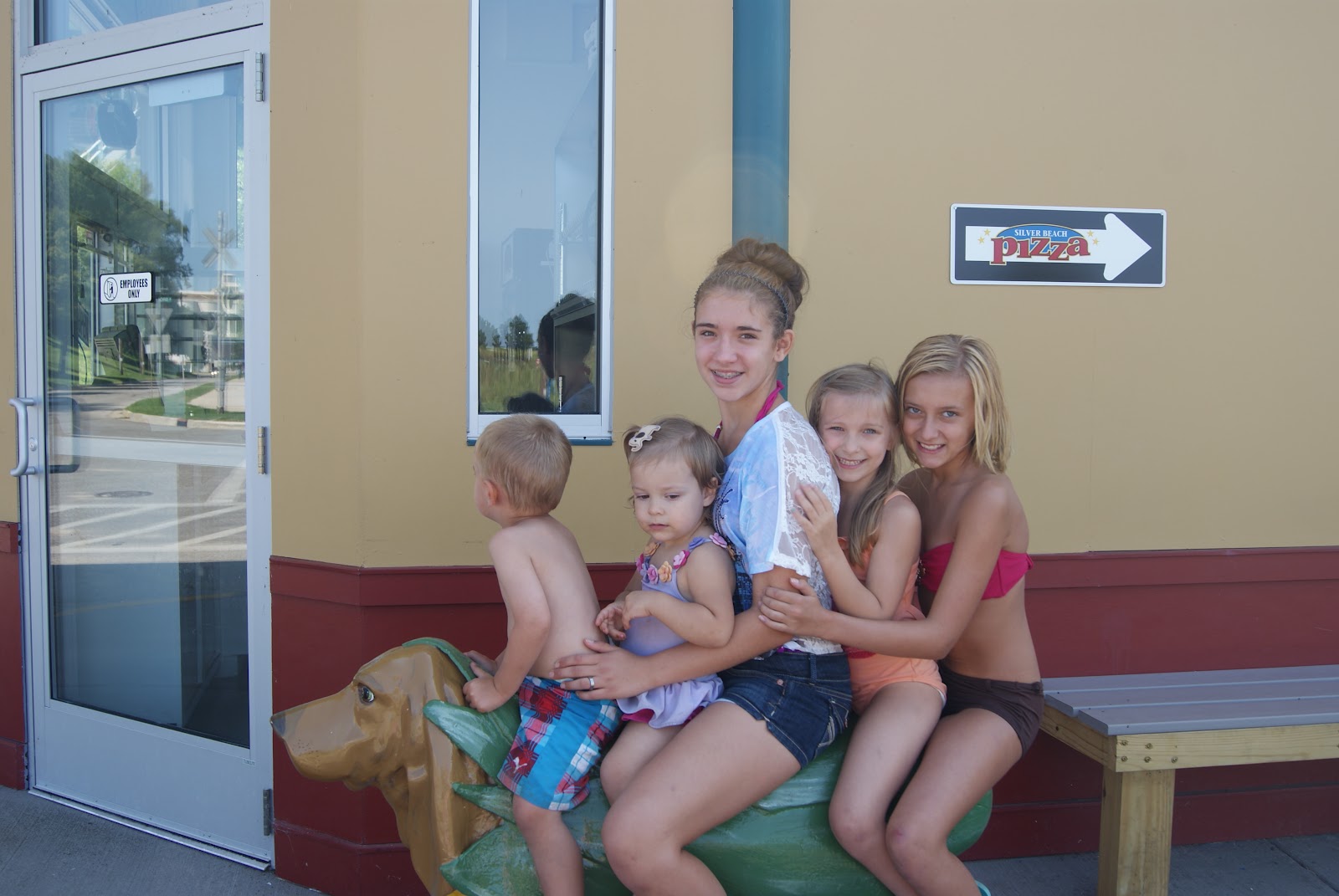 While we were in the area we met up with Kasey and her kids, Jamie (step-mom), McKenna and Reagan. We went to the St. Joe carousel and fountain that is located right on the beach. They have done so many great improvements in the area since I’ve lived there. After spending the morning at the carousel and eating popcorn, we got Silver Beach Pizza (YUM!) and went back to my Dad’s to let the kids play. We had such a good time, which always makes the time we spend there go too fast!
