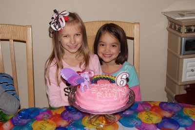 Riley turned 6 at the end of September, so we had a small get together with family and a couple of close friends. R requested a my little pony cake and I have to admit, I got lazy and took the easy way out. I didn’t decorate it much, but she loved it and didn’t notice. I’m realizing how much work it’s going to be to put on 4 birthday parties for the kids!!