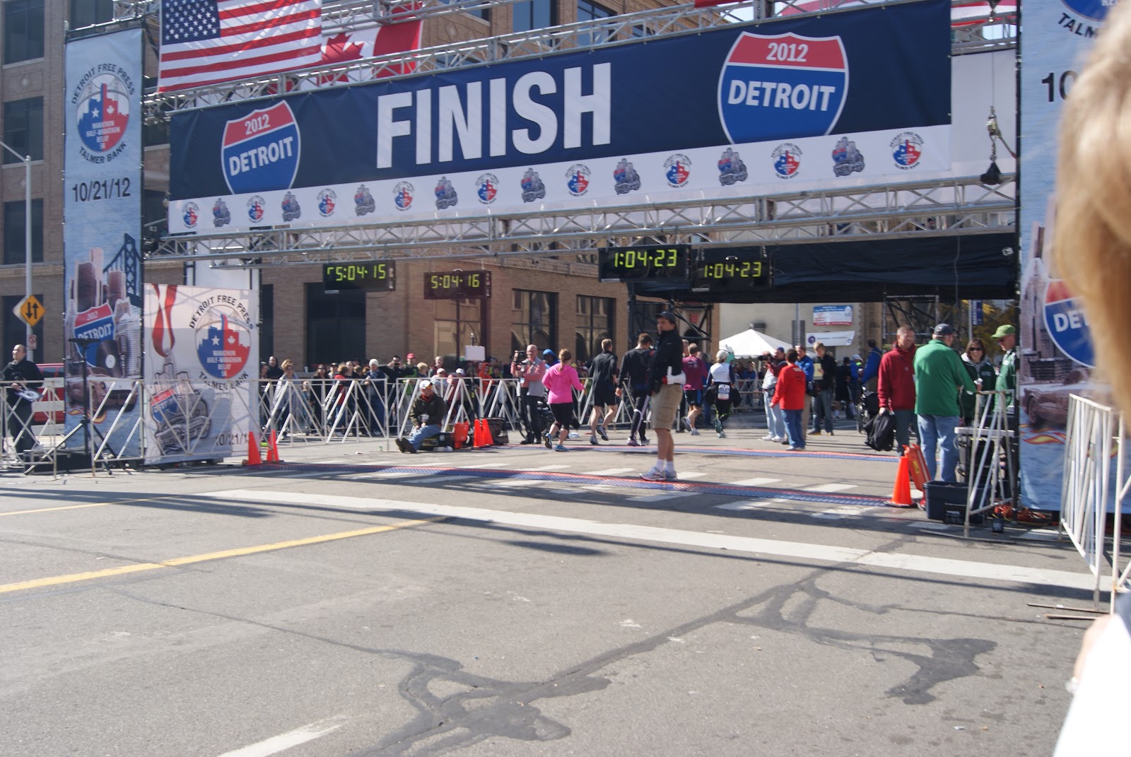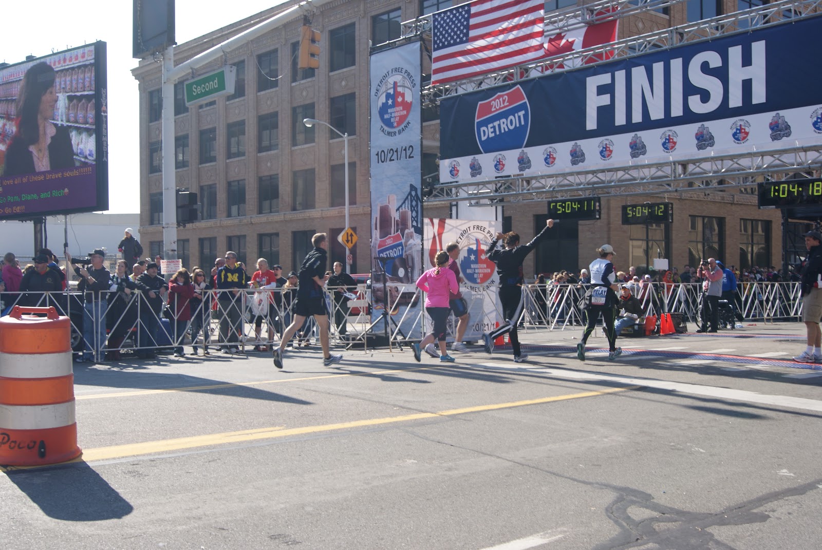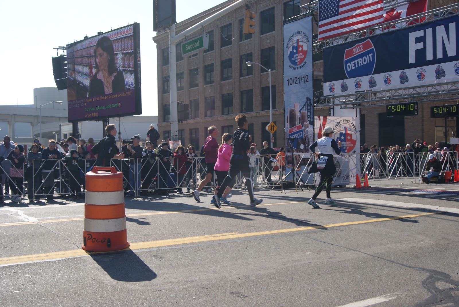 Saturday morning, my dad, Jamie and girls came up to watch our kids then Jori ended up coming later that evening and staying the night with them so I could cheer him on, on Sunday morning! We stayed at a friends house who didn’t live too far from Detroit. We got up at 4am on Sunday morning, ate breakfast and drove to Detroit. Emily and I dropped the guys off near the start and we attempted to make our way through downtown Detroit without getting lost. Unfortunately, at 37 weeks preggo I’m not very fast so I didn’t get to see Ty start but we did get to see Ian (he was running the half marathon).