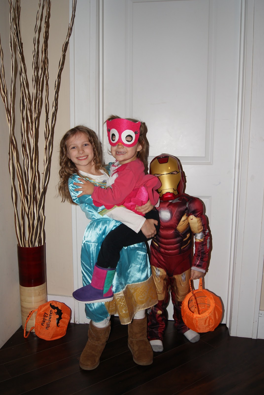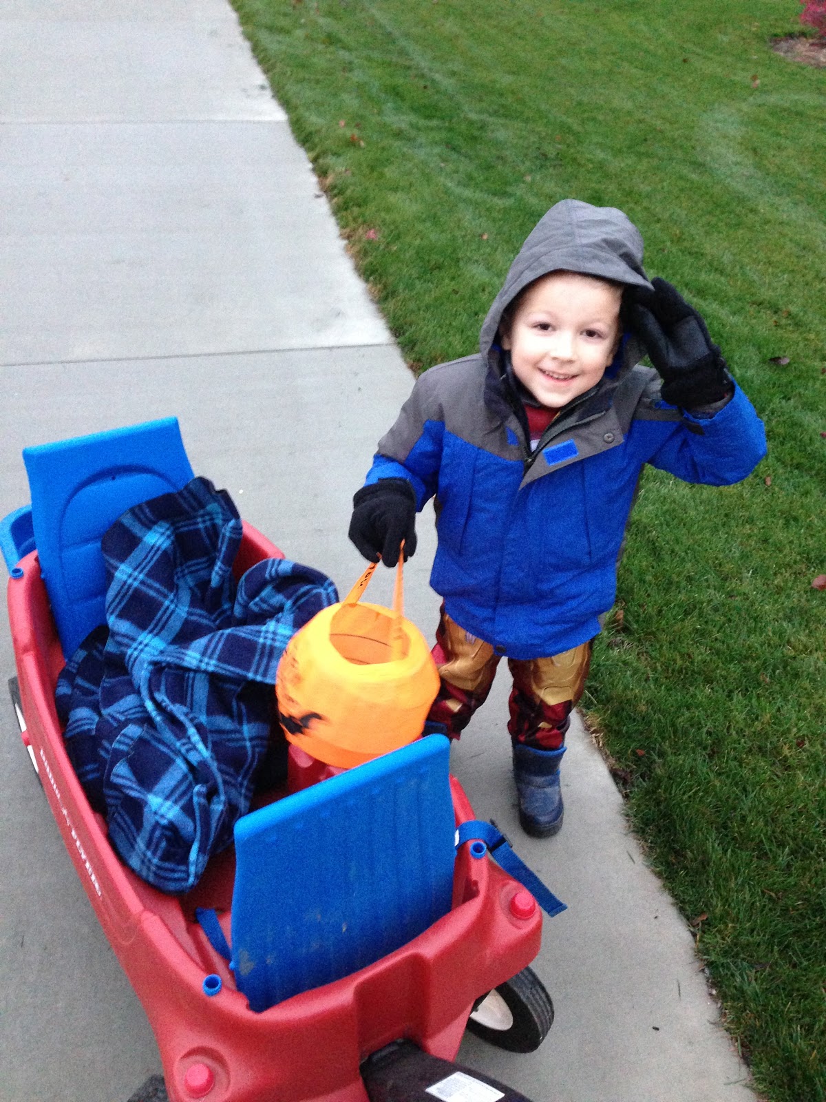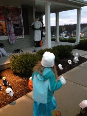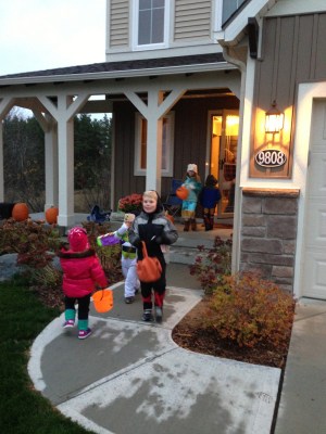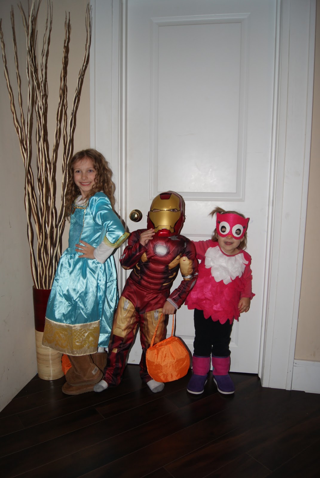 Halloween isn’t my favorite “holiday”, but I enjoy watching the kids get dressed up and go trick or treating. This year we went trick or treating as a family. We didn’t really make plans because I didn’t know if we’d have a baby by then (although, I should have known better…my babies don’t come early!). Riley wanted to be Merida, from the movie Brave (which she’s never seen), Lincoln chose Iron Man and Emmersyn was an owl.