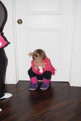 Riley was so excited to have her hair curly, considering she has stick straight hair normally. Emmersyn wasn’t happy about wearing a mask. I think I got 2 pictures with it on her, otherwise she tore it off or threw a fit when I tried to get her to wear it (proof below)! It was a really cold and wet day, but thankfully about 5 minutes before we started it had stopped raining!