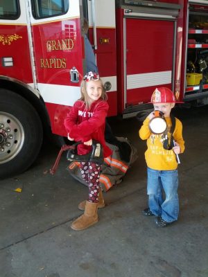 A few weeks back, it was fire safety week. Most schools have fire trucks and firemen visit and the kids get to check things out and learn about fire safety. Well, since I’m homeschooling my kids, I wanted my kids to have the same experience…just better! One morning, a friend and I took our 6 kids to the local fire house to check out the fire trucks, the fire house and say hi to the firemen. The kids had a BLAST and the firemen couldn’t have been more kind, loving and patient towards our kids (they were all young guys and most had small children our kids’ ages!). All week I spent time showing the kids were our fire alarms were, teaching them what to do if I fire happens, and doing lots of fire safety activities. We all had fun, but the highlight was definitely their visit to the fire station!