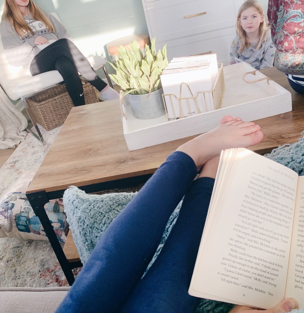 One #homeschoolhack that I learned a long time ago is that if my kiddos are not getting along, are “bored” or misbehaving, all I need to do is sit down and start reading. Doesn’t matter what I’m reading and I don’t need to give them a warning. They will all eventually start to congregate around me, listening intently, crawling on my lap, engrossed in the storyline and asking questions—no matter how young or old, even the teenager gathers around! We haven’t had a vehicle to get out of the house much in 2 weeks and cabin fever is a real thing so it’s been a great way to pass the time. Try it sometime, they’re never too old to be read aloud to! 💕